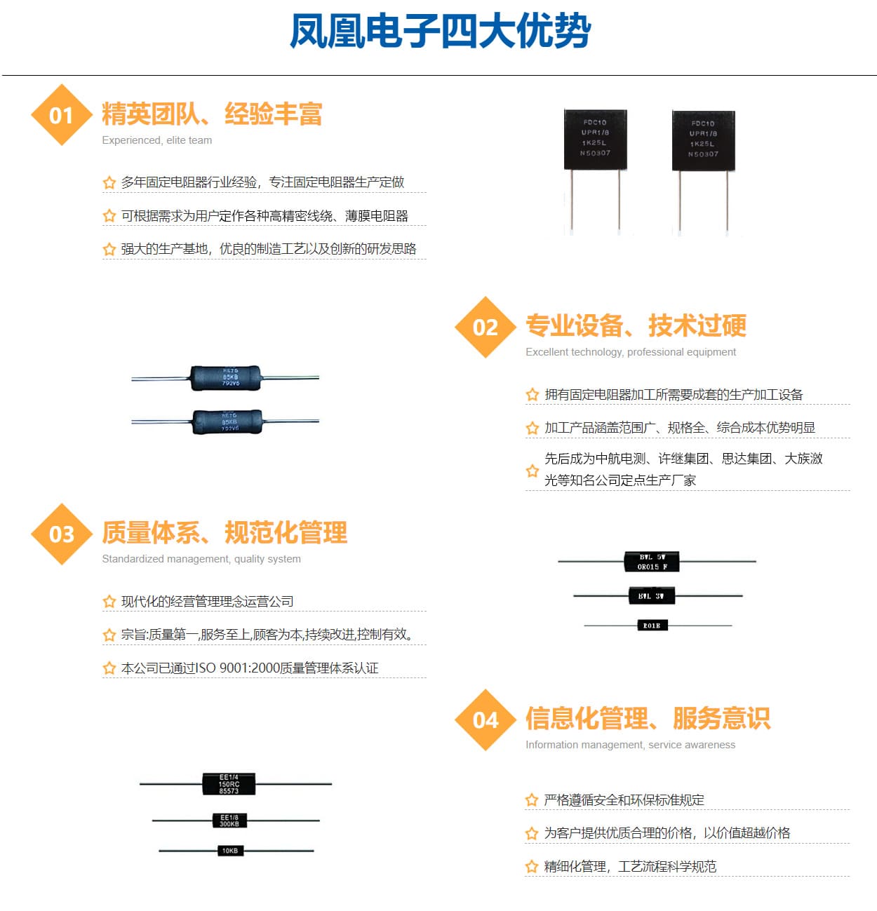 - 蚌埠鳳凰電子有限責(zé)任公司是生產(chǎn)各類高精密電阻器的專業(yè)廠家,公司主要生產(chǎn)符合美國軍標EE、RE、RN型高精密金屬膜電阻,UPR、UPRN高精密電阻網(wǎng)絡(luò)及功率型低電感BWL、BVR系列精密電阻器,公司還生產(chǎn)RX70、RX71系列精密線繞電阻器及CMF型精密片式電阻器和車用電阻器RXGM-1/RXGM-2系列,動車用磁場削弱電阻器、充電電阻器、機車啟動電阻器等幾十···